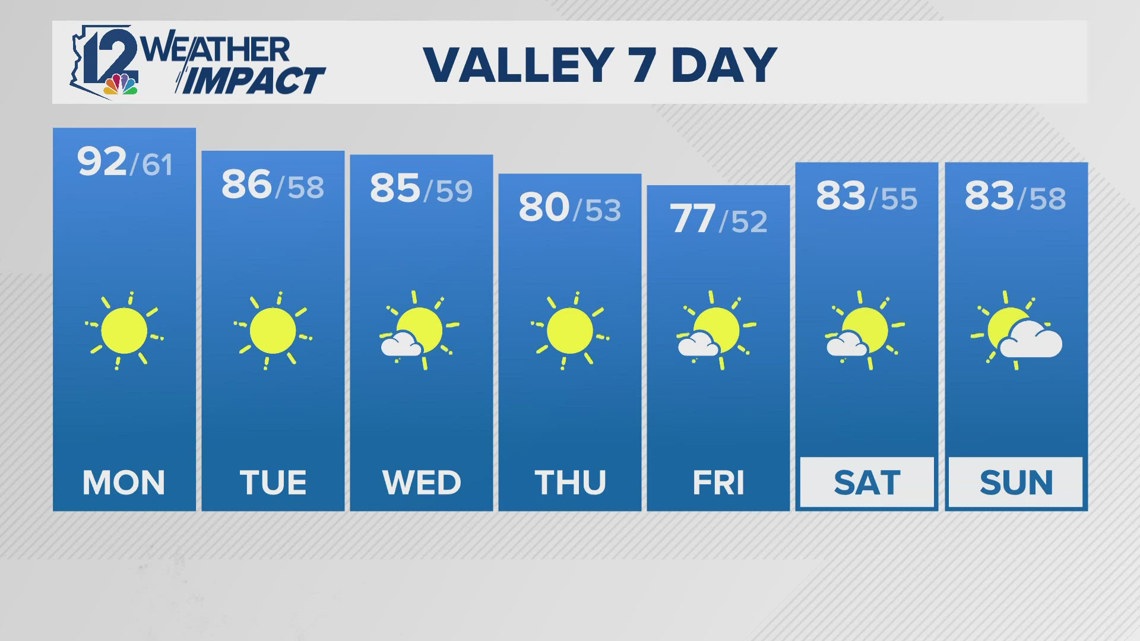Aunque les tengo una buena noticia si usted es de los que no están listos para el calor en esta temporada del año. Veremos un sistema del tiempo más grande que traerá una significativa baja para finales de semana. Las montañas verán una baja de 15+ grados y Phoenix permanecerá en los altos 70. ¡Aunque eso sigue siendo por arriba del promedio para principios de marzo!
