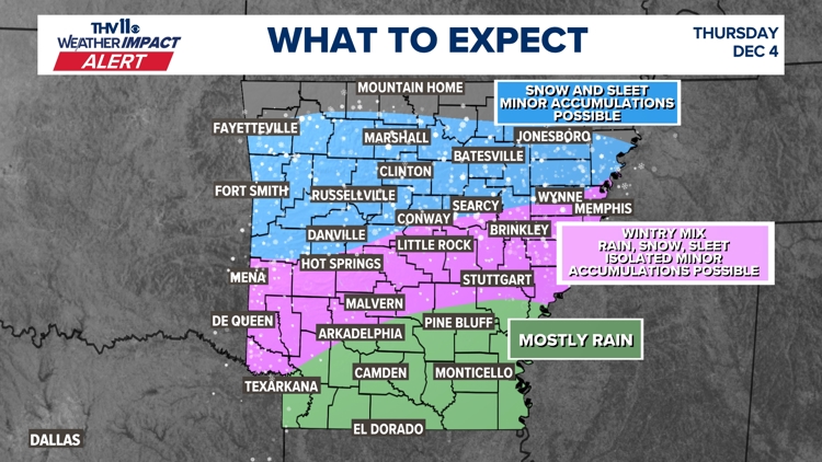 With that information in mind, our team of meteorologists here at THV11 has issued a Weather Impact Alert for Thursday, December 4, 2025, into Thursday night.