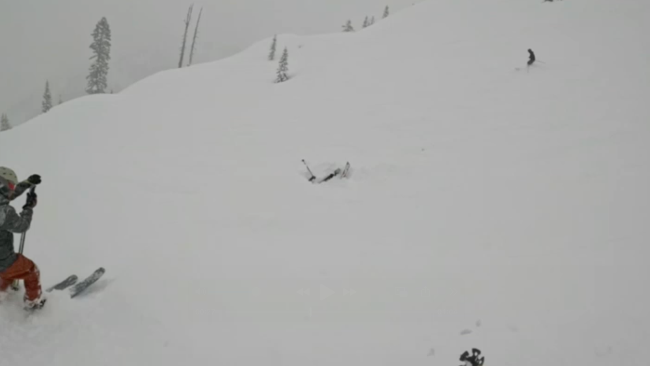 Schmidt, who happened to be videotaping his ski adventures, noticed a person’s ski poles and skis face up and a pile of snow.